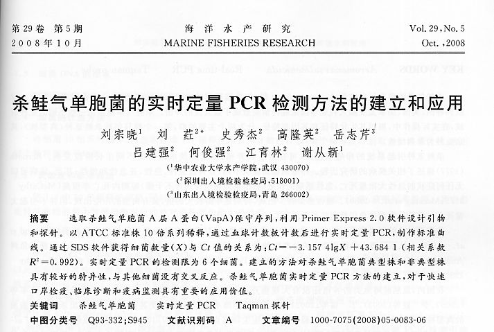 殺鮭氣單胞菌的實時定量PCR檢測方法的建立和應用