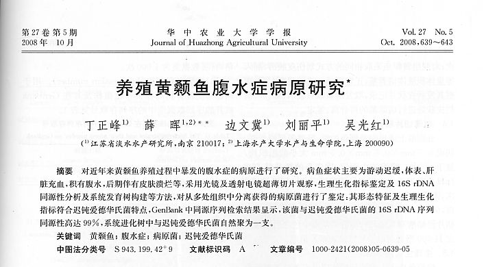 養(yǎng)殖黃顙魚腹水癥病原研究