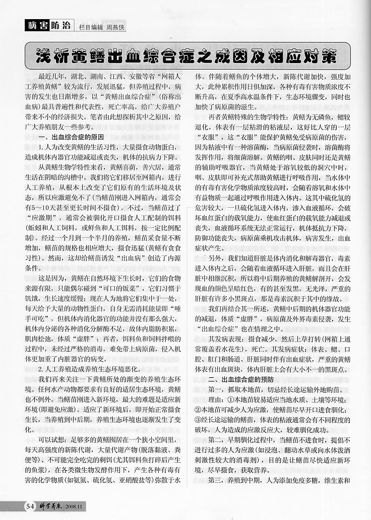 淺析黃鱔出血綜合癥之成因及相應(yīng)對(duì)策