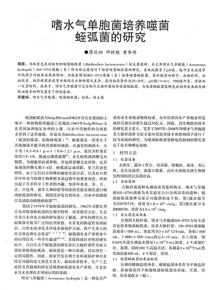 嗜水氣單孢菌培養(yǎng)噬菌蛭弧菌的研究1