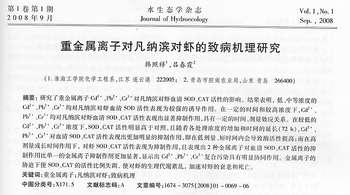 重金屬離子對凡納濱對蝦的致病機(jī)理研究