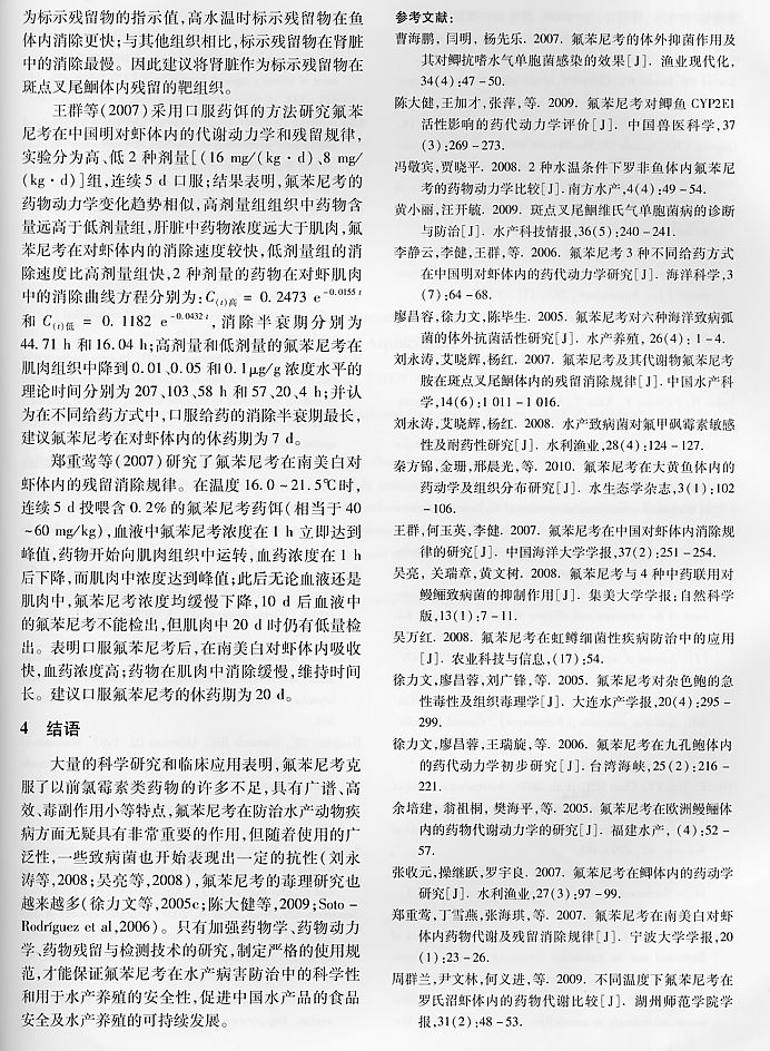 氟苯尼考的藥效學(xué)及其在水產(chǎn)動物中的代謝動力學(xué)研究進(jìn)展4