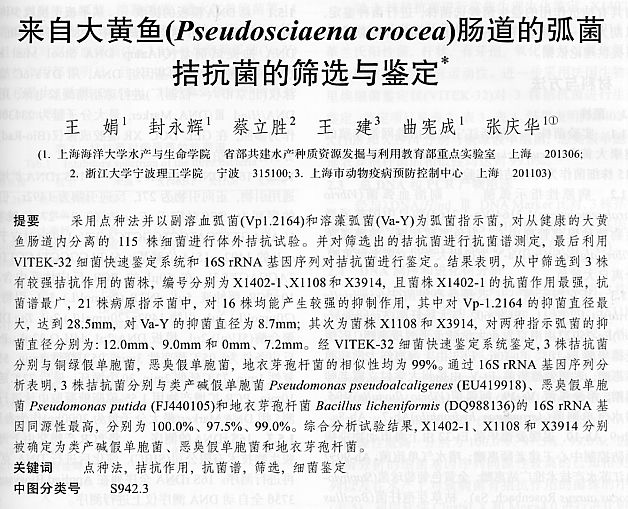 來自大黃魚腸道的弧菌拮抗的帥選與鑒定