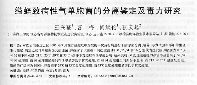 縊蟶致病性氣單胞菌的分離鑒定及毒力研究