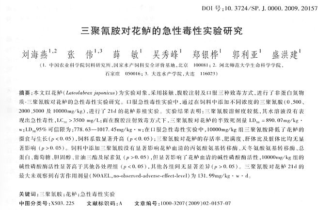 三聚氰胺對花鱸的急性毒性實驗研究
