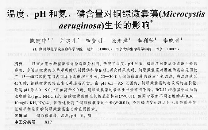溫度、pH和氮、磷含量對銅綠微囊藻生長的影響