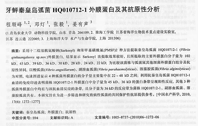 牙鲆秦皇島弧菌HQ010712-1外膜蛋白及其抗原性分析