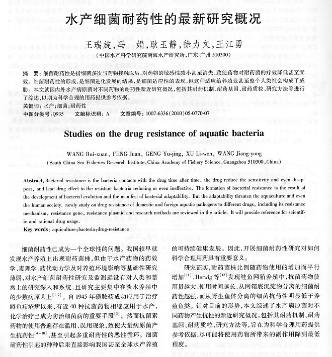 水產(chǎn)細(xì)菌耐藥性的最新研究概況1