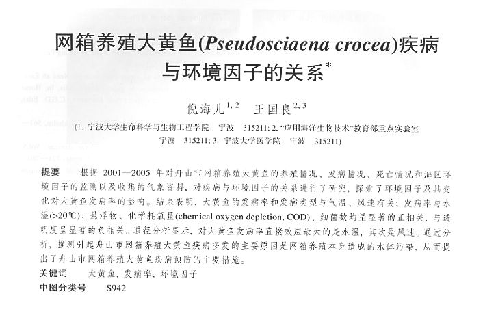 網(wǎng)箱養(yǎng)殖大黃魚(yú)(Pseudosciaena&nbspcrocea)疾病與環(huán)境因子的關(guān)系