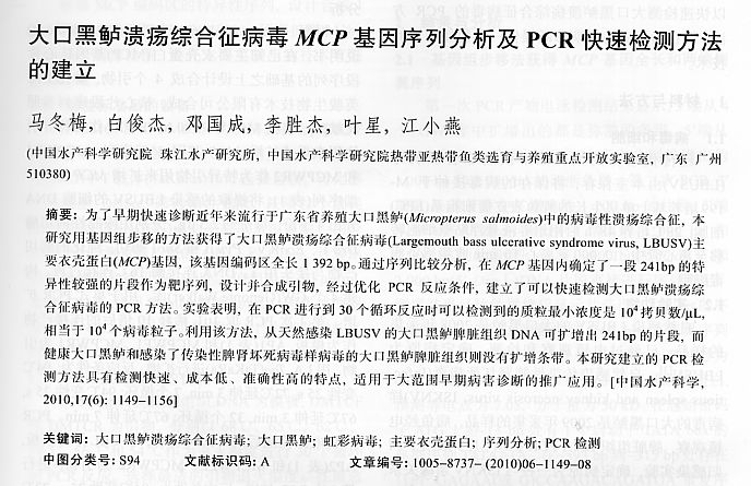 大口黑鱸潰瘍綜合征病毒MCP基因序列分析及PCR快速檢測方法的建立