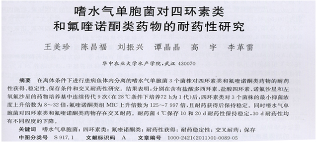 嗜水氣單細(xì)胞對(duì)四環(huán)素類和氟喹諾酮類藥物的耐藥性研究