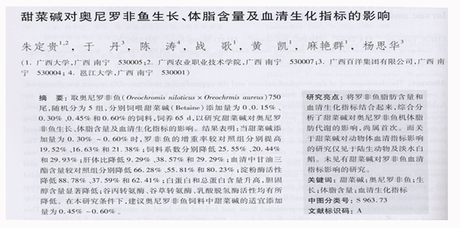 甜菜堿對奧尼羅非魚生長、體脂含量及血清生化指標的影響