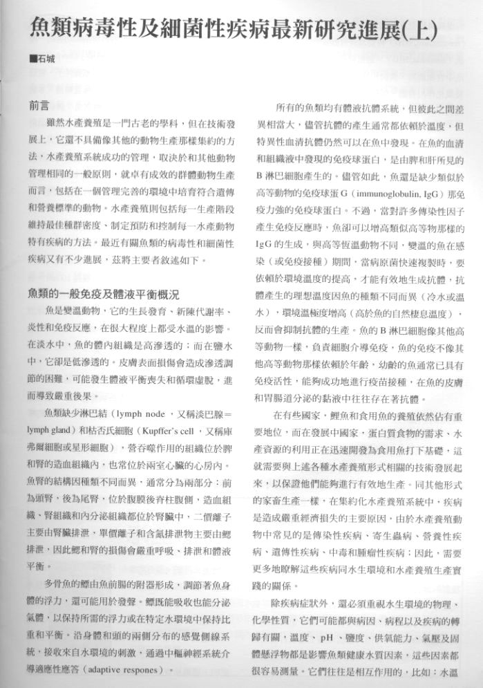 魚類病毒性及細菌性疾病最新研究進展(上) 1