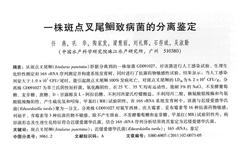 一株斑點(diǎn)叉尾鲴致病菌的分離鑒定