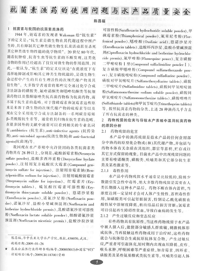 抗菌素漁藥的使用問題與水產(chǎn)品質(zhì)量安全1