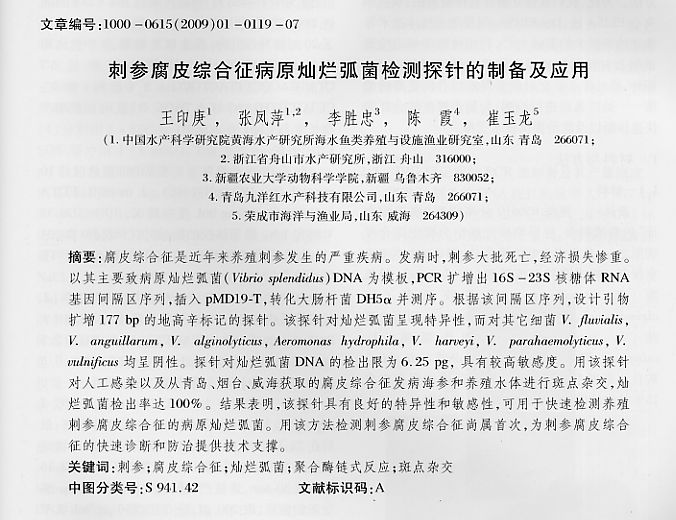 刺參腐皮病綜合征原燦爛弧菌檢測探針的制備及應用