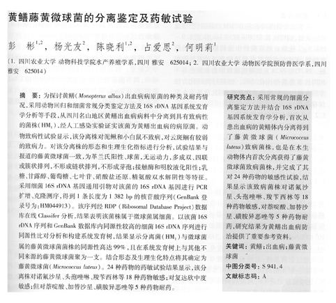 黃鱔藤黃微球菌的分離鑒定及藥敏試驗(yàn)