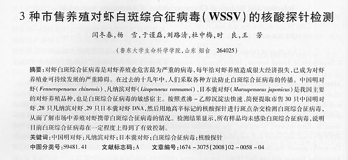 3種市售養(yǎng)殖對蝦白斑綜合征病毒(WSSV)的核酸探針檢測