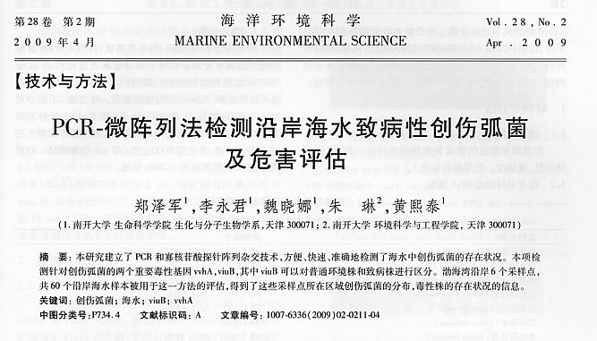 PCR-微陣列法檢測沿岸海水致病性創(chuàng)傷弧菌及危害評估