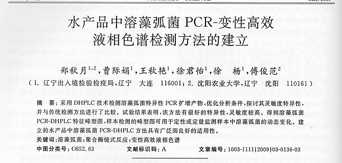 水產(chǎn)品溶藻弧菌PCR-變性高效液相色譜檢測方法的建立