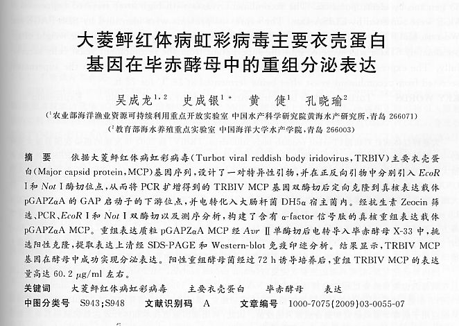 大菱鲆紅體病虹彩病毒主要衣殼蛋白基因在畢赤酵母中的重組分泌表達(dá)